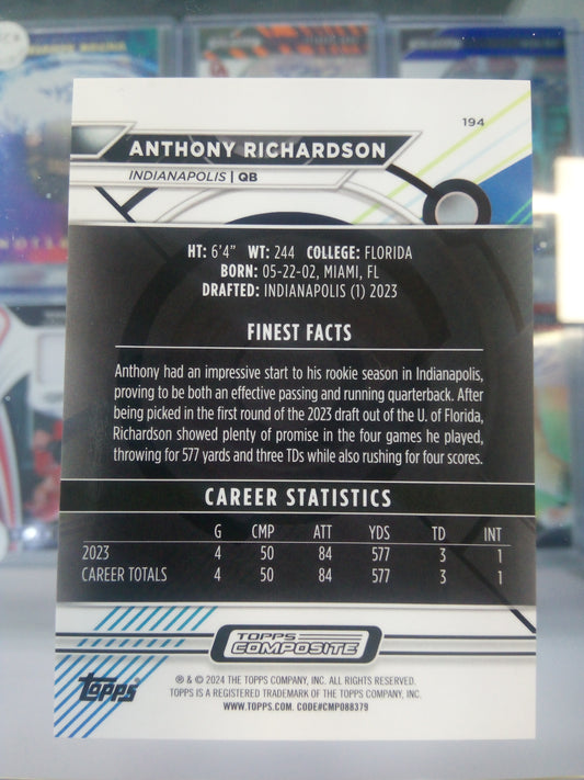 2023 Topps Finest * Anthony Richardson * #125/199 Blue Refractor RC #194