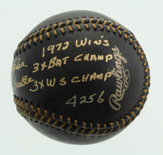 Pete Rose Signed OML Black Leather Baseball * 9 Inscriptions * Fiterman