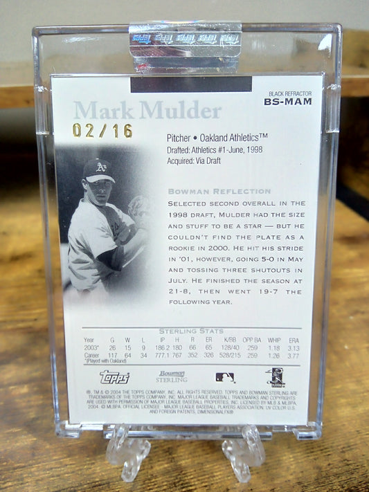 2004 Bowman Sterling * Mark Mulder * #02/16 Black Refractor Relic #BS-MAM