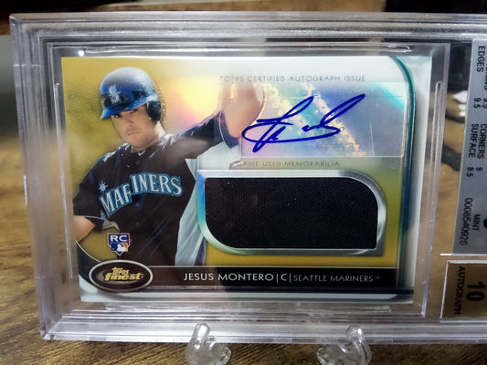 2012 Topps FInest * Jesus Montero * #14/50 Gold RC Relic Auto #AJR-JM BGS9