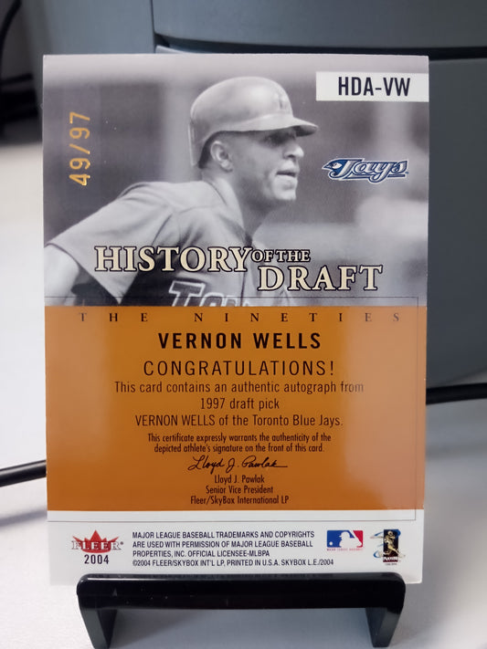 2004 Skybox LE * Vernon Wells * #49/97 History Of The Draft The 90s Copper Auto #HDA-VW