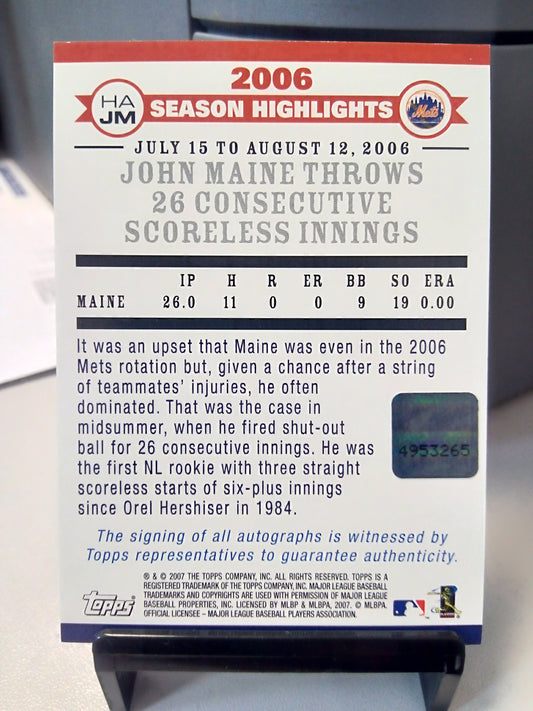 2007 Topps 2006 Highlights Auto John Maine #HAJM Auto