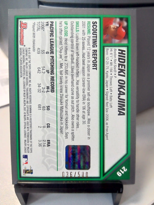 2007 Bowman * Hideki Okajima * #036/500 Rookie Card Japanese Auto #219