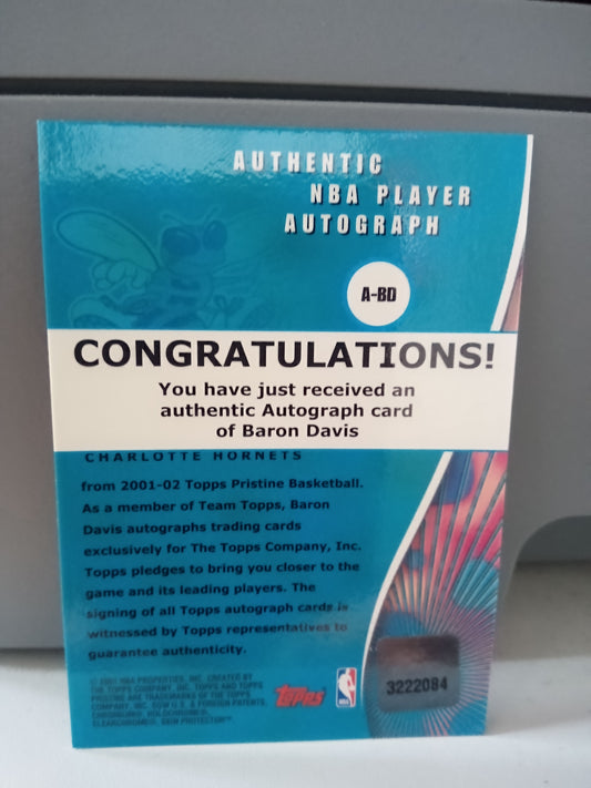 2001-02 Topps Pristine * Baron Davis * Refractor Auto #A-BD