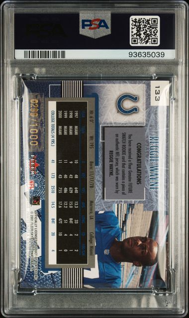 2001 Fleer Genuine * Reggie Wayne * #0299/1000 Future Swatch #133 * PSA