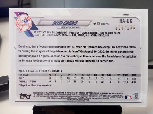 2021 Topps Chrome * Deivi Garcia * #157/199 Aqua Refractor Auto #RA-DG