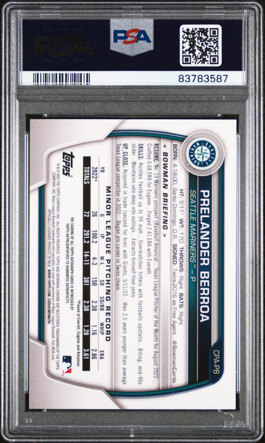 2023 Bowman * Prelander Berroa * 1st Chrome Auto #CPA-PB * PSA 9