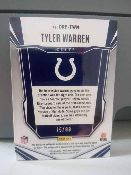 2025 Panini Phoenix * Tyler Warren * #15/99 Dual RPA #DRP-TWN