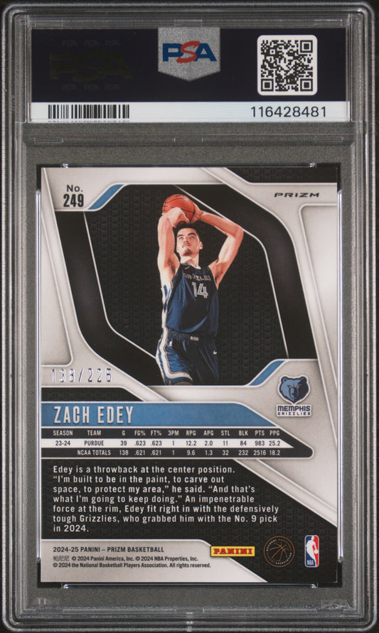 2024-25 Panini Prizm * Zach Edey * #138/225 Teal Ice RC #249 * PSA
