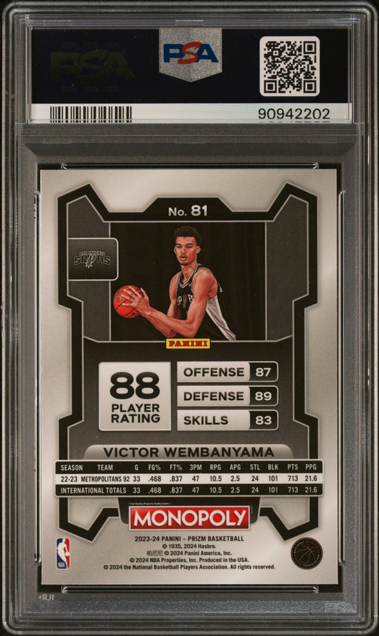 2023 Prizm Monopoly * Victor Wembanyama * RC #81 * PSA 10