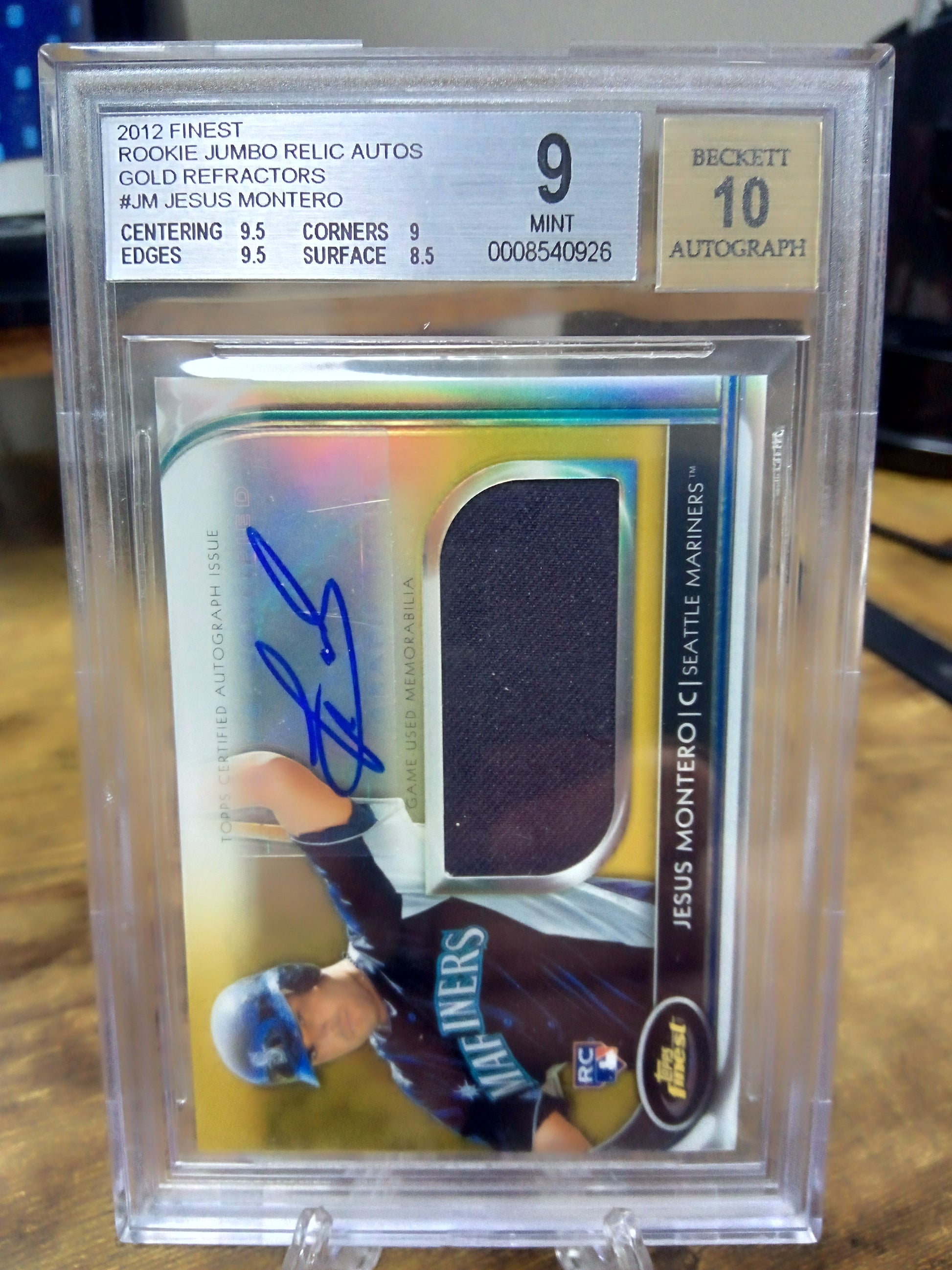2012 Topps FInest * Jesus Montero * #14/50 Gold RC Relic Auto #AJR-JM BGS9